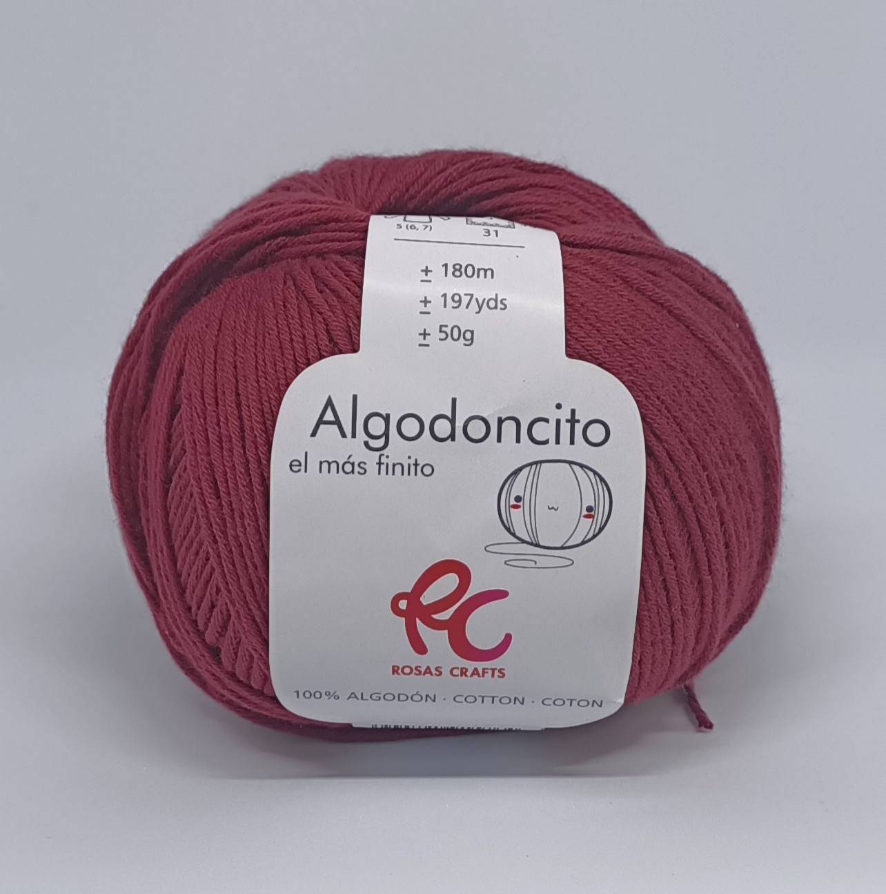 Algodoncito Rosas Crafts en color burdeos143. Algodoncito el más finito de RC clásicos. Es un hilo elaborado en 100% algodón, liso, mate y muy suave. Al ser algodón es un tejido traspirable, suave, natural e ideal para el contacto directo con la piel. Incluso con las pieles mas sensibles. Es perfecto para cualquier confección infantil y bebés. Las prendas hechas con nuestro algodoncito son ideales para cualquier confección de verano y primavera, y se pueden emplear como capas intermedias en otoño y invierno. Tiene una amplia gama de colores.