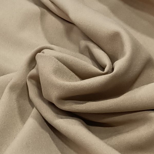 Tela doble crep ENZO camel. El tejido de doble crep es una tela gruesa, con elasticidad, caída fluida y color neutro. Nuestra tela doble crep ENZO camel es ideal para cualquier confección de moda casual, como chaquetas, faldas, petos, vestidos, etc. Siendo para pantalones de temporada otoño e invierno su mayor uso.