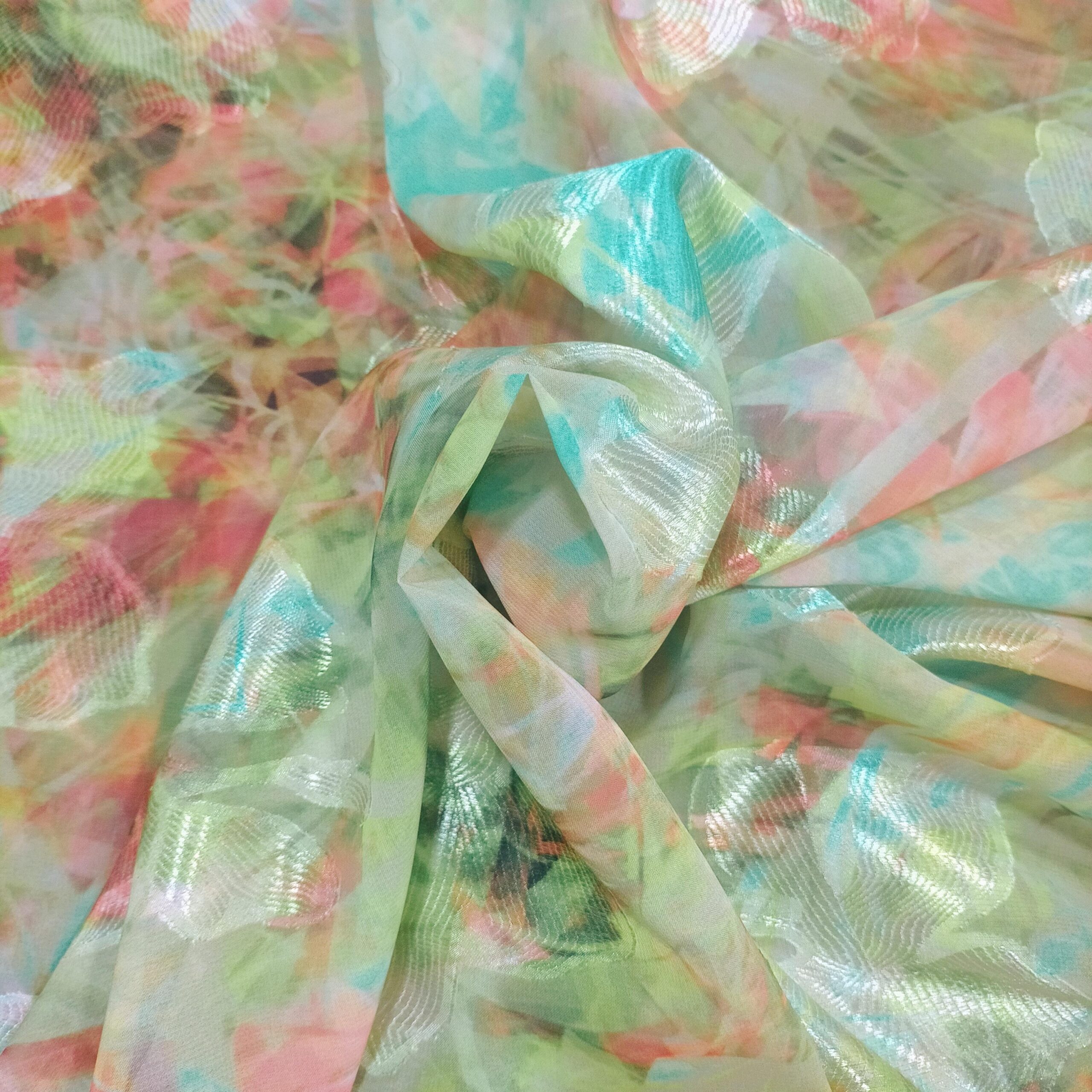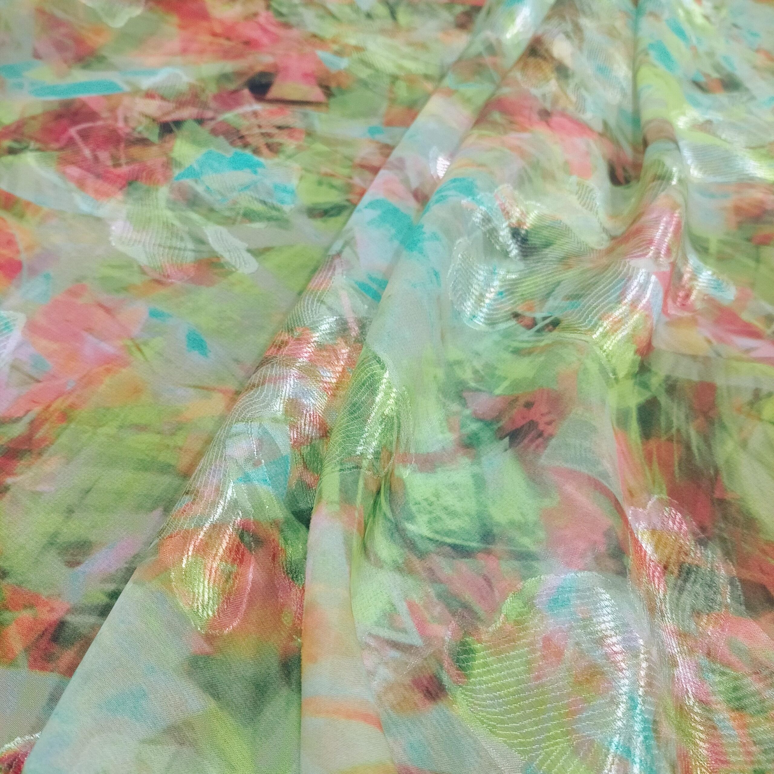 La gasa devoré es un tejido translucido , fluido y vaporoso, la diferencia con la gasa normal es que está gasa es la unión de dos tipos de tejidos y tiene partes de gasa y partes satinada. Es ideal para vestido largo, blusa, abrigo, faldas vaporosas, etc. , confecciones de fiesta y moda.