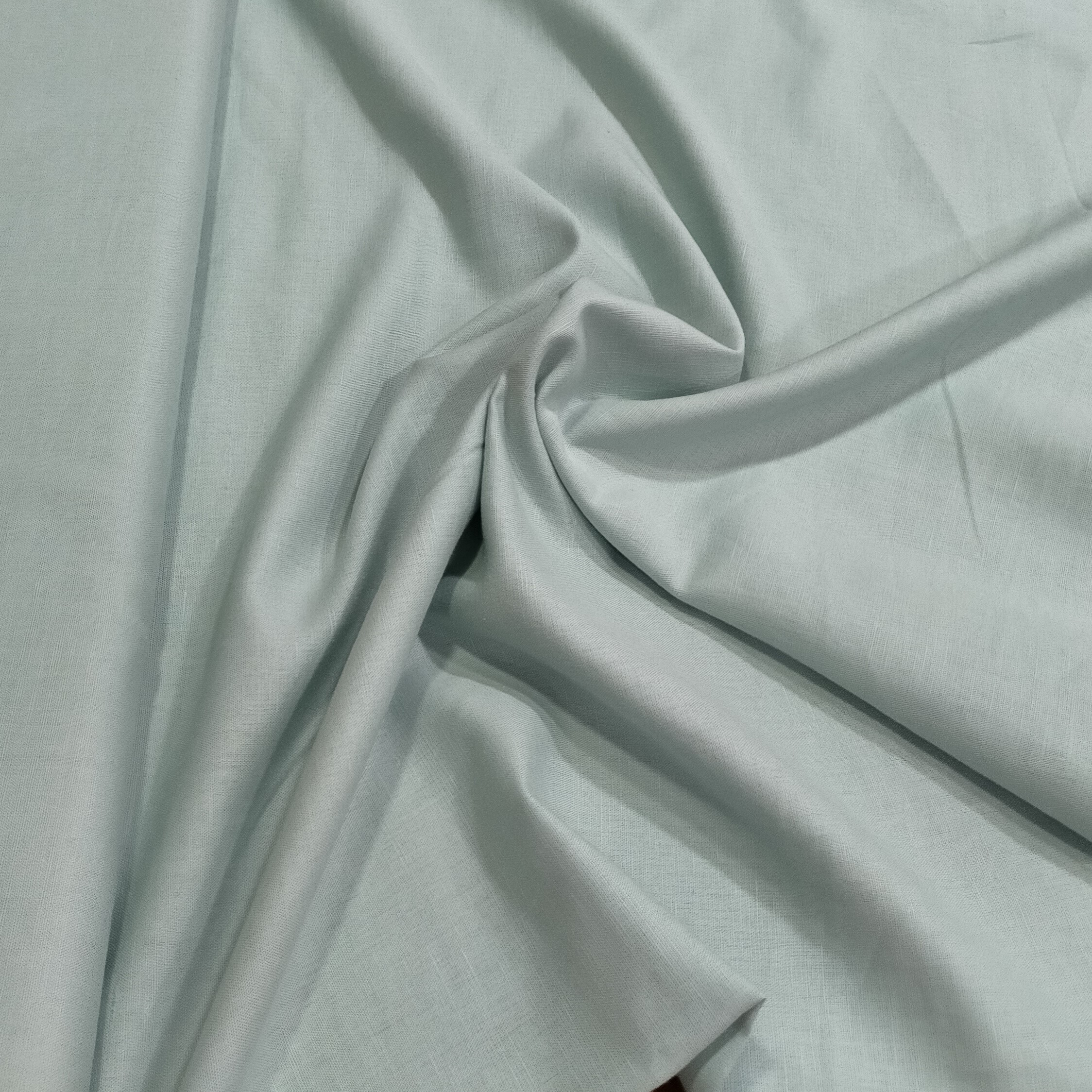 Tela lino-algodón azul verde empolvado. Los tejidos de lino, hilo y semi hilo, son telas muy frescas, que absorben muy bien el calor, lo que las hace sentir como prendas ideales para el verano y temporadas de calor. Son ideales para cualquier confección infantil, señora y caballero, para elaboraciones de hogar, etc.