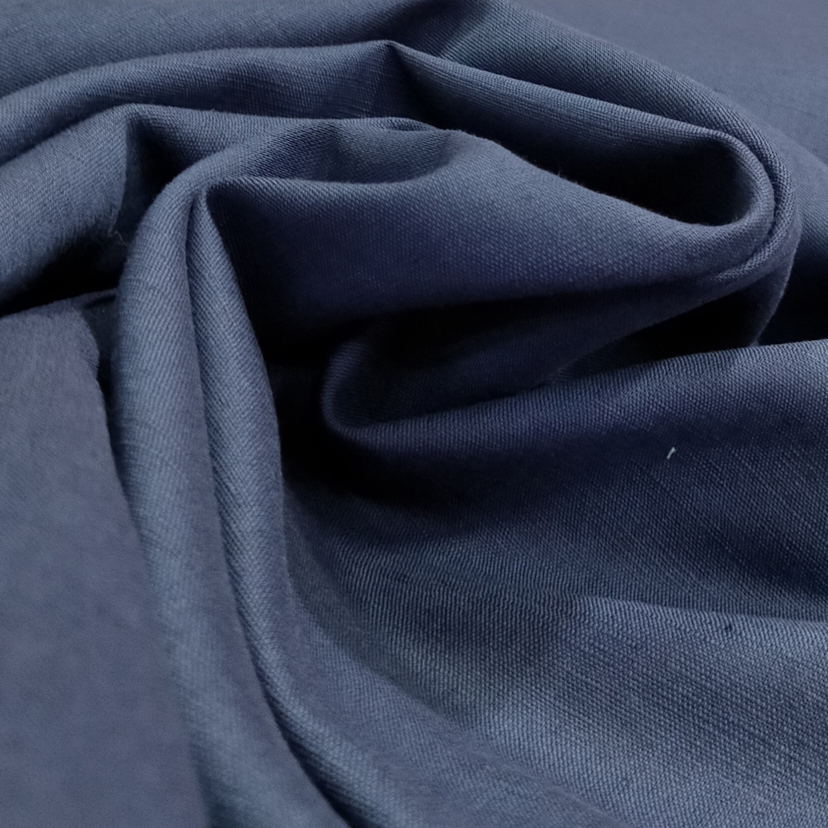 Tela lino-algodón azul marino. Los tejidos de lino, hilo y semi hilo, son telas muy frescas, que absorben muy bien el calor, lo que las hace sentir como prendas ideales para el verano y temporadas de calor. Son ideales para cualquier confección infantil, señora y caballero, para elaboraciones de hogar, etc.