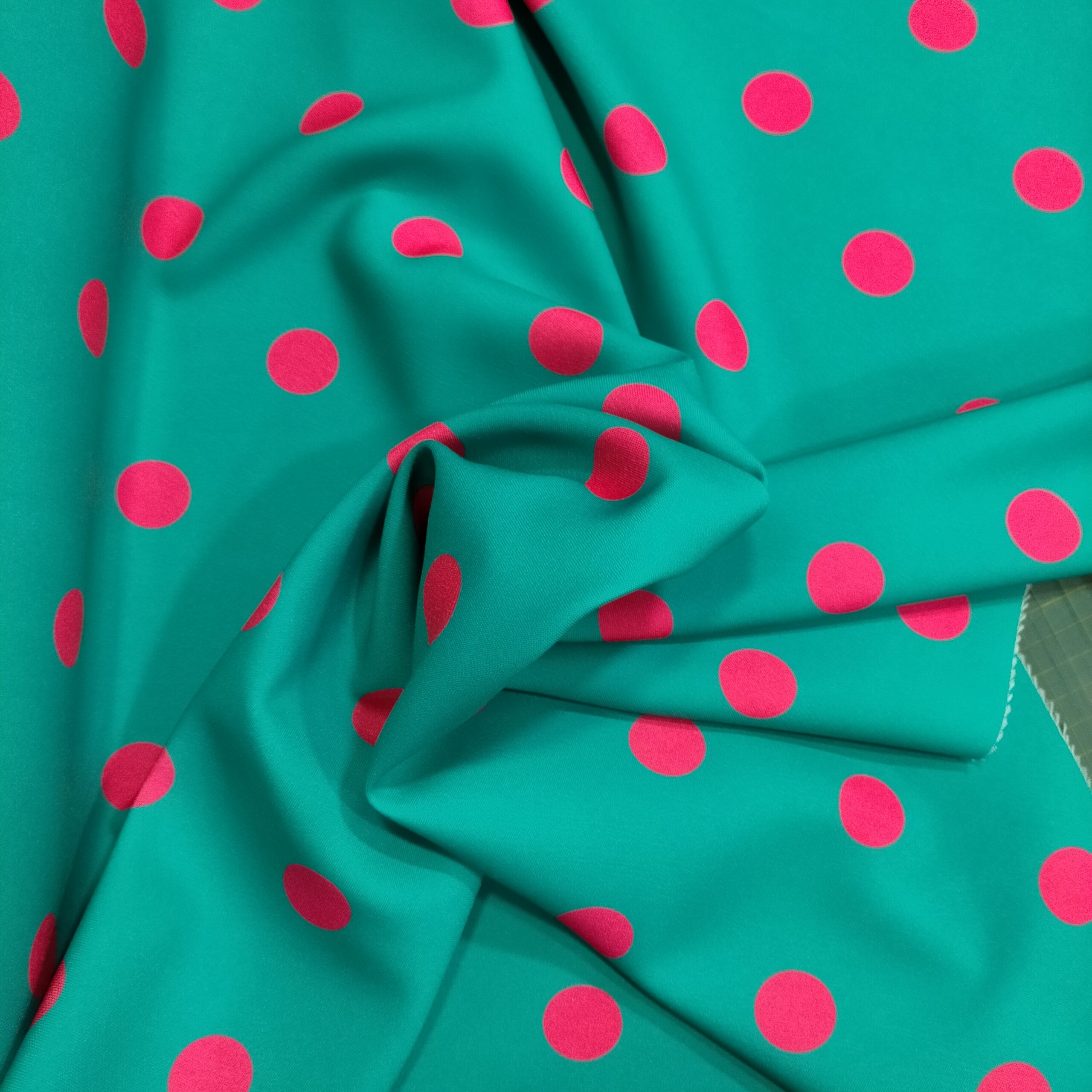 Tela lunar strech bicolor, fondo aguamarina lunar fucsia.